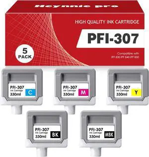 PFI-307 Ink Cartridge Set Compatible for Canon PFI307 PFI-307MBK PFI-307BK PFI-307C PFI-307M PFI-307Y Ink Tank for imagePROGRAF iPF830, iPF840, iPF850 CAD Plotters(5pack, MBK BK C M Y)