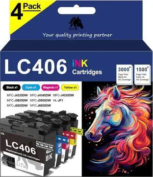 4-Pack Compatible LC406 Ink Cartridges for Brother LC406 LC 406 LC-406 BK/C/M/Y for Brother MFC-J4335DW MFC-J4345DW MFC-J4535DW MFC-J5855DW MFC-J5955DW MFC-J6555DW MFC-J6955DW HL-JF1 Printer
