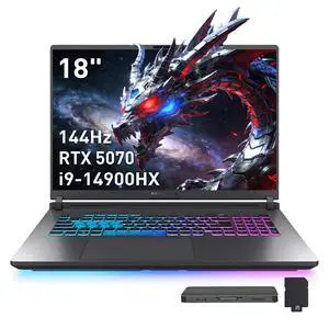 ASUS ROG Strix G18 18" WUXGA 144Hz Gaming Laptop, Intel i9-14900HX, 64GB DDR5, 5TB Storage(4TB SSD+1TB Docking Station), GeForce RTX 5070, RGB Backlit Keyboard, Numer Pad, Win 11 Pro, Gray