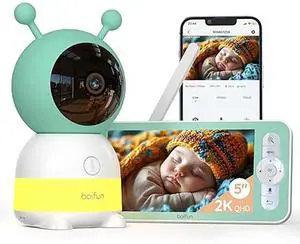 2K WiFi Baby Monitor with Camera and Audio,Smartphone APP, Colorful Night Light, Smart AI Motion & Sound & Humidity & Temperature Detection, Auto Tracking,5-Inch Monitor Control, Night Vision