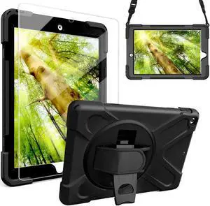 iPad 9th/ 8th/ 7th Generation Case 10.2" 2021/2020/2019, Full-Body Shockproof Heavy Duty Protective Case with Screen Protector, 360° Rotating Stand/Handle/Shoulder Strap for iPad 10.2, Black
