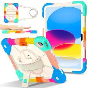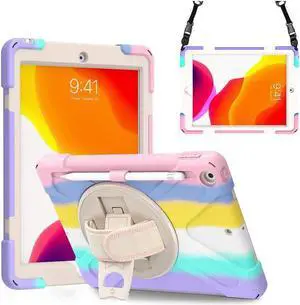 WERLEO Case for iPad 10.2 inch 2021 2020 2019 9th 8th 7th Generation with Rotating Stand Pencil Holder Hand/Shoulder Strap, Heavy Duty Shockproof Protective Cover Rainbow