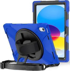iPad 10th Generation Case 10.9'' 2022 New Released, iPad 10th Generation 10.9 Rugged Shockproof Protective Case with Pencil Holder Kickstand Hand Strap and Shoulder Strap,Blue