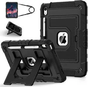 iPad Air 5th Gen 2022 / Air 4th Gen 2020 Shockproof Case, Waterproof Shockproof Snow Proof Dirt Proof Heavy Duty Rugged Protective Cover with Pencil Holder Shoulder Strap Kickstand Keyboard Interface,