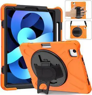 Case for iPad 10th Generation 2022 10.9 Inch Model A2696 A2757 A2777, Heavy Duty Rugged Shockproof Protective cover with Pencil Holder, Kickstand Orange