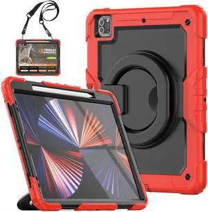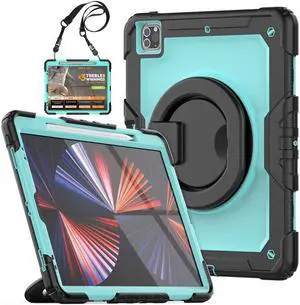 Ultimate Case for iPad Pro 12.9-inch 2022 6th M2 /2021 (5rd Generation) / iPad Pro 12.9" 4th/3rd Gen Rugged Shockproof Tablet Cover with 360° Rotatable Kickstand & Shoulder Strap, Blue