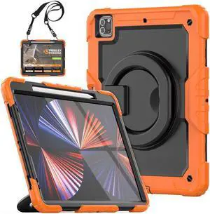 Case for iPad Pro 12.9-inch 2022 6th M2 /2021 (5rd Generation) / iPad Pro 12.9" 4th/3rd Gen Heavy Duty Rugged Shockproof Tablet Cover with 360° Rotating Hand Strap & Shoulder Strap, Khaki