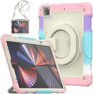 Case for iPad Pro 12.9-inch 2022 6th M2 /2021 (5rd Generation) / iPad Pro 12.9" 4th/3rd Gen Heavy Duty Rugged Shockproof Tablet Cover with 360° Rotating Hand Strap & Shoulder Strap, Lavender