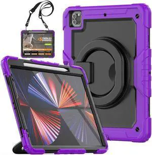 Ultimate Case for iPad Pro 12.9-inch 2022 6th M2 /2021 (5rd Generation) / iPad Pro 12.9" 4th/3rd Gen Rugged Shockproof Tablet Cover with 360° Rotatable Kickstand & Shoulder Strap, Lavender