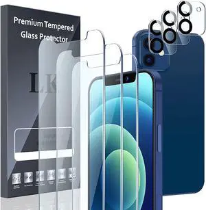 BONAEVER 3 Pack Screen Protector for iPhone 12 with 3 Pack Camera Lens Tempered Glass Protector, 6.1 Inch HD Clear Tempered Glass Film 9H Hardness Full Coverage, Scratch Resistent, No Air Bubbles