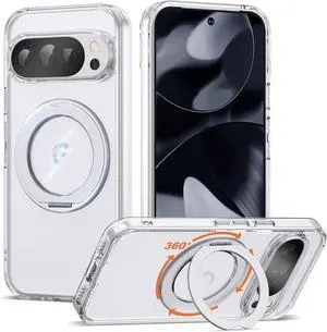 WERLEO Compatible with Google Pixel 9 Pro XL/Pixel 10 Pro XL Case with 360° Magnetic Ring Stand [Compatible with Mag-Safe] Shockproof Translucent Phone Case 6.8" for Women Men Clear
