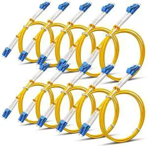 10 Pack Lc to Lc Single Mode Fiber Patch Cable 1m/3.28 ft Os2 Single Mode Fiber Optic Cable Duplex Lszh Jumper Cord Yellow Smf