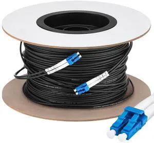 500ft (150 Meters) Fiber Lc to Lc Outdoor Armored Fiber Optic Internet Cable 9/125um Single Mode Duplex Cable Jumper, Compatible with OS1/OS2, Low Friction LSZH, Black