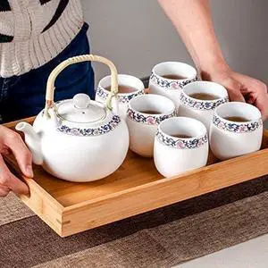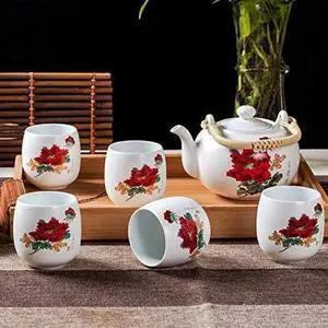 Ceramic Kettle Ceramic Teapot Set Kung Fu Tea Set Set Household Simple Set Cup Ceramic Teapot Cup Modern Creative 6 Pack, Brown Grass (Rich Peony)