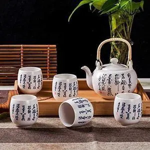 Ceramic Kettle Ceramic Teapot Set Kung Fu Tea Set Set Household Simple Set Cup Ceramic Teapot Cup Modern Creative 6 Pack, Brown Grass (Tang Poetry)