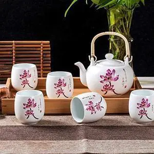 Ceramic Kettle Ceramic Teapot Set Kung Fu Tea Set Set Household Simple Set Cup Ceramic Teapot Cup Modern Creative 6 Pack, Brown Grass (Lantern Flower)