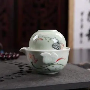 Ceramic Kettle Ceramic Teapot Set Kung Fu Tea Set Set Household Simple Set Cup Ceramic Teapot Cup Modern Creative 6 Pack, Brown Grass (Lantern Flower)