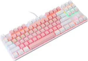 87 Key Mechanical Gaming Keyboard, RGB Backlit, Blue Switch, Punk Style Keycaps, Water Proof, Plug Play USB for PC, Laptop, Compact Wired Keyboard for Gamers, Typists (Black)
