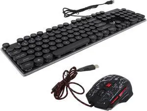 HCUCTOS Mouse Combos Colorful Crack LED Illuminated Backlit USB Ergonomic Wired PC Gaming Keyboard + Mouse