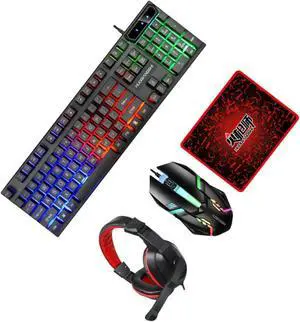 Gadpiparty 4-in-1 Gaming Keyboard Mouse Headset and Pad Set LED Lighting Compact for Easy Use PC Gaming Kit