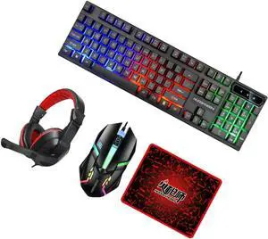 HHWKSJ RGB Gaming Keyboard and Backlit Mouse and Headset Combo,USB Wired Backlit Keyboard,LED Gaming Keyboard Mouse Set,Headset with Microphone for Laptop PC Computer Game and Work