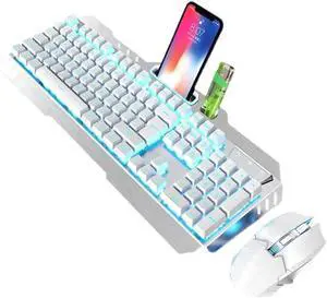 Gaming Keyboard and Mouse Combo, Dual Mode 100 Keys, 1600DPI Mouse Set for PCs Laptops, for Tablets Smart TVs ()