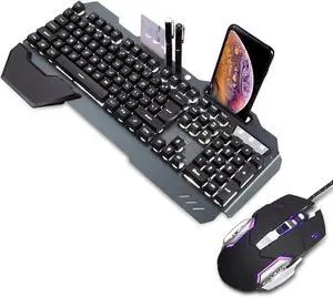 Feilx Gaming Keyboard and Mouse Combo, LED Backlit Mechanical Feel Business Office Keyboard Colorful Breathing Backlit Gaming Mouse for Working Or Primer Gaming