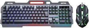 Gaming Keyboard and Mouse Combo, Rainbow Backlit Keyboard with 104 Key Computer PC Gaming Keyboard for PC/Laptop