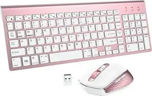 Wireless Keyboard Mouse Combo, cimetech Compact Full Size Wireless Keyboard and Mouse Set 2.4G Ultra-Thin Sleek Design for Windows, Computer, Desktop, PC, Notebook - (Rosegold)