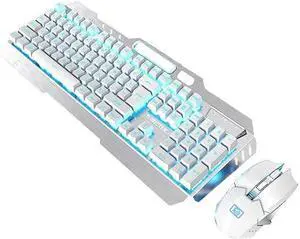 BlueFinger Wireless Gaming Keyboard and Mouse, Rechargeable Rainbow Backlit Wireless Keyboard and Ergonomic Light Up Mouse Combo for Windows, Mac, PC, Laptop