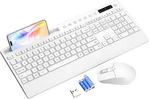 White Wireless Keyboard and Mouse Combo - Full-Size Quiet Keyboards with Palm Rest, Phone Holder, Multimedia Keys, Batteries Included, Office Key Board Compatible with Windows, PC, Laptop - Trueque