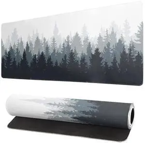 Large Mouse Pad Desk Mat Gaming Mouse Pad XL XXL Mouse Pad for Desk Desk Pad for Keyboard and Mouse Desk Matt for Desktop Extended Long Mousepad Thin Black White Forest 35 x 15 in
