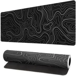 JVFYI Extended Gaming Mouse Pad, Large Gaming Mouse Waterproof with Stitched Edges, Non-Slip Desktop Pad for Home and Office, Level Up Your 31.5x11.8 Inch (Black Topographic)