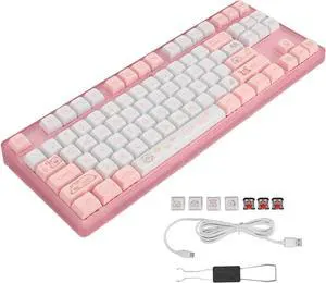 Wired Keyboard, 87 Keys Red Switch USB Mechanical Keyboard PBT Keycaps White Backlight Gaming Keyboard for for OS X, for Linux