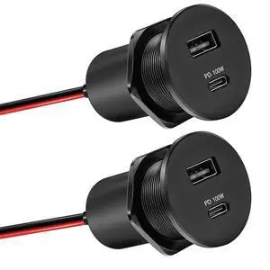 12V Aluminum USB Outlet 100W PD3.1 Type-C & 18W QC3.0 USB-C Laptop Charger Socket Dual Port Fast Charging Recessed Mount Car Charger Replacement for RV Camper Trailer Truck Boat Car (2 Pcs)