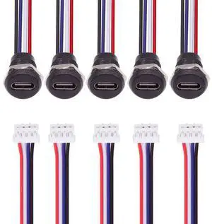Vszerda DIY OEM 5pcs Type C Female Socket to 4Pin Header 24AWG Cable Pitch=2.0mm Panel Mount Type DC 5V Power Data