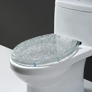 Glitter Soft Close Toilet Seat with Quick Release, Resin Oval Design, 360° Adjustable Hinges, Top and Bottom Fixing, Easy to Install & Clean, Gold (Pink)(Silver) (Silver)