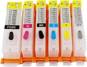 6 Refillable Ink Cartridges Compatible with MG6310 MG6610 MG7110 MG7510 IP8710 Printers Fits PGI150 PGI 150 150 151 Grey Ink