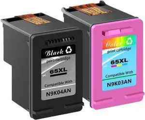 65 65XL Remanufactured Black and Color Ink Cartridge Replacement Works with 5055 5058 5052 DeskJet 3755 2622 Printers(1 Black 1 Color)