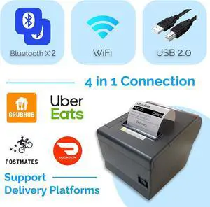 MR.BOSS 3 Inch Width Receipt Thermal Printer Bluetooth WiFi USB Support Food Delivery Ticket Printing App Ubereats Doordash Grubhub Postmates Also for Togo Shop Bubble Tea Fastfood Restaurant