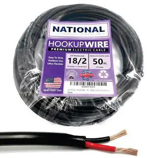NATIONAL Wire & Cable 18 AWG 2-Conductor Premium Copper Wire, 50 ft, Stranded | Made in USA, Flexible Jacket | LED Strips, Electronics, Low Voltage, DIY Projects, Indoor and Outdoor Use