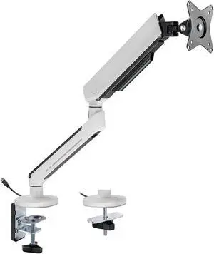 Display Bracket Arm Single Monitor Mount Arm, Supports 17-42" Screens and 33 lbs, Adjustable Gas Spring Mount with 31 RGB Lighting Modes and USB Port, C-Clamp & Grommet Display Bracket(White)