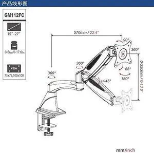 GM112FC Gas Spring 360 Degree Desktop Clamping Monitor Holder LCD LED TV Mount Bracket Arm