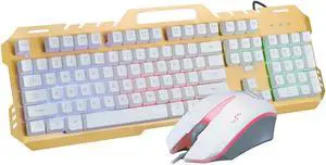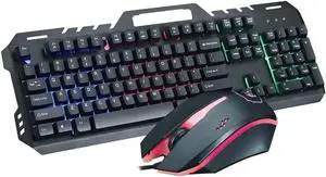 Gaming Keyboard and Mouse Combo, Rainbow Backlit Keyboard with 104 Key Computer PC Gaming Keyboard for PC/Laptop