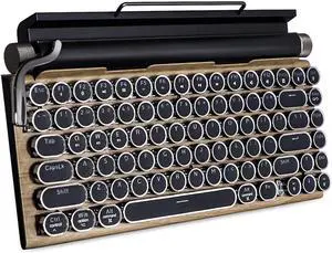 Typewriter Keyboard,Round Keycaps/White Backlit/Compact 75% Layout Keyboard for Windows/Mac/PC/Laptop (Woodgrain Color)