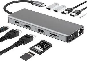 USB C Laptop Docking Station, Docking Station Dual Monitor, 13 in 1 DockingStation 3 Monitors with 2HDMI,VGA, Ethernet,7USB C/A Port, 100w PD, SD/TF, USB C Hub for Dell/HP/Surface/Lenovo Laptop
