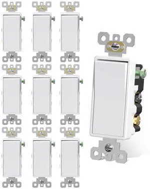 AIDA 4 Way Switch Decorative Light Switch, 15Amp, 120/277 Volt, 4 Way Decorative Light Rocker Switch Replacement, Self-Grounding, Residential and Commercial Grade, UL Listed (10 Pack, Glossy White)