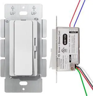 Dimmer Light Switch & 60W 12V Dimmable LED Driver 2 in 1, Flicker-Free Dimming for LED Strip Lights, 3-Way Switch Compatible, 120VAC to 12VDC Power Supply for Low Voltage Projects, UL Listed, Class 2