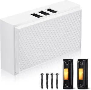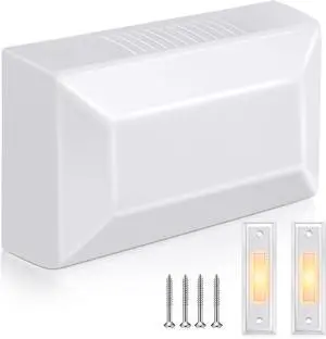 Saillong Wired Door Bell Chime Kit, 2 16V 10VA Two Note Lighted Doorbell Push Buttons for Front, Rear Door and Door Bells Chime Box for Home Wall, Compatible with Most Doorbells(White, Yellow Light)