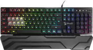 BLOODY B380 Light Strike 8 Key Optical Membrane Gaming Keyboard | Full RGB LED Backlit Keyboard | Smooth & Linear Quite Keys | Ergonomic Detachable Wrist Rest Design | LK Optical Gaming Series